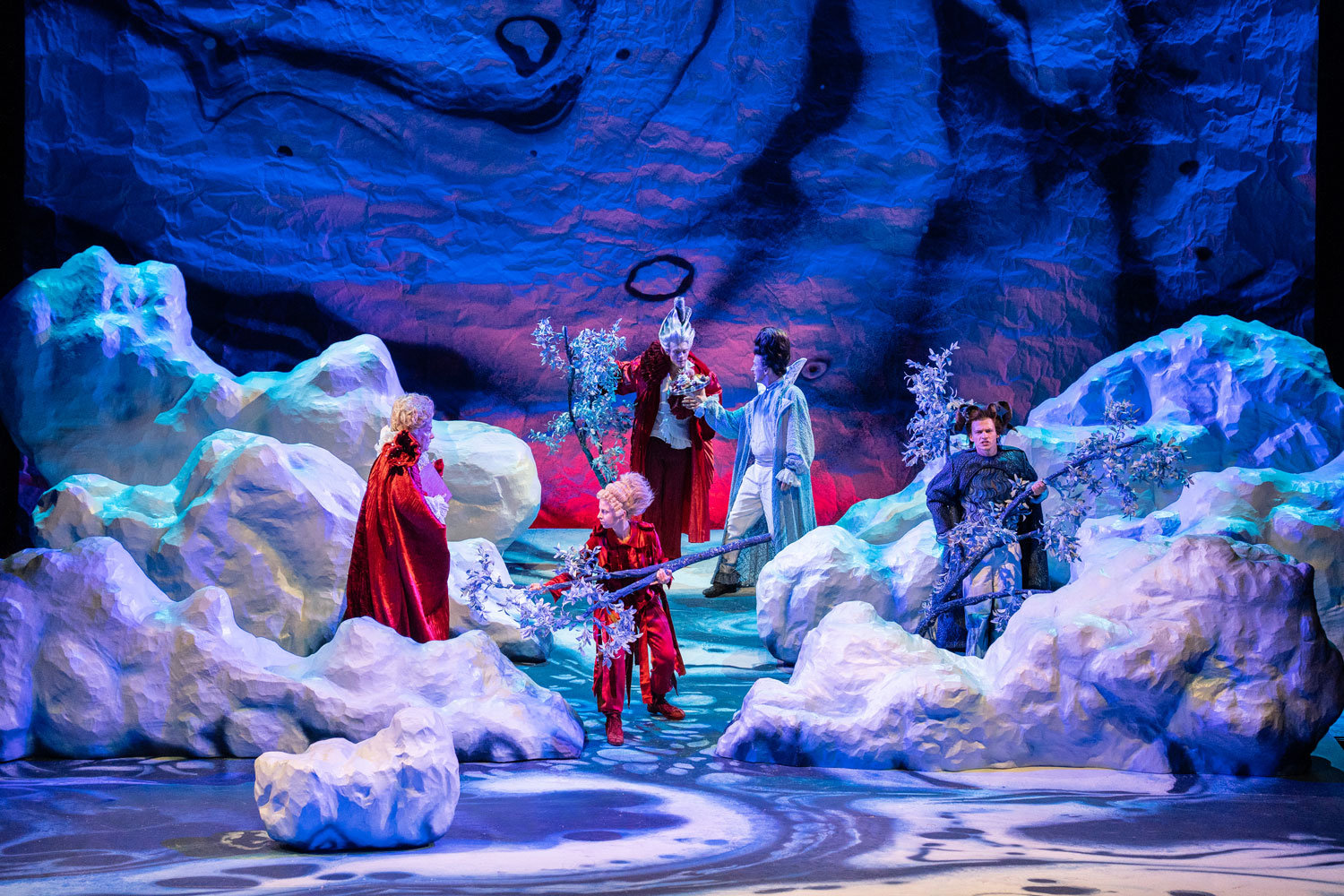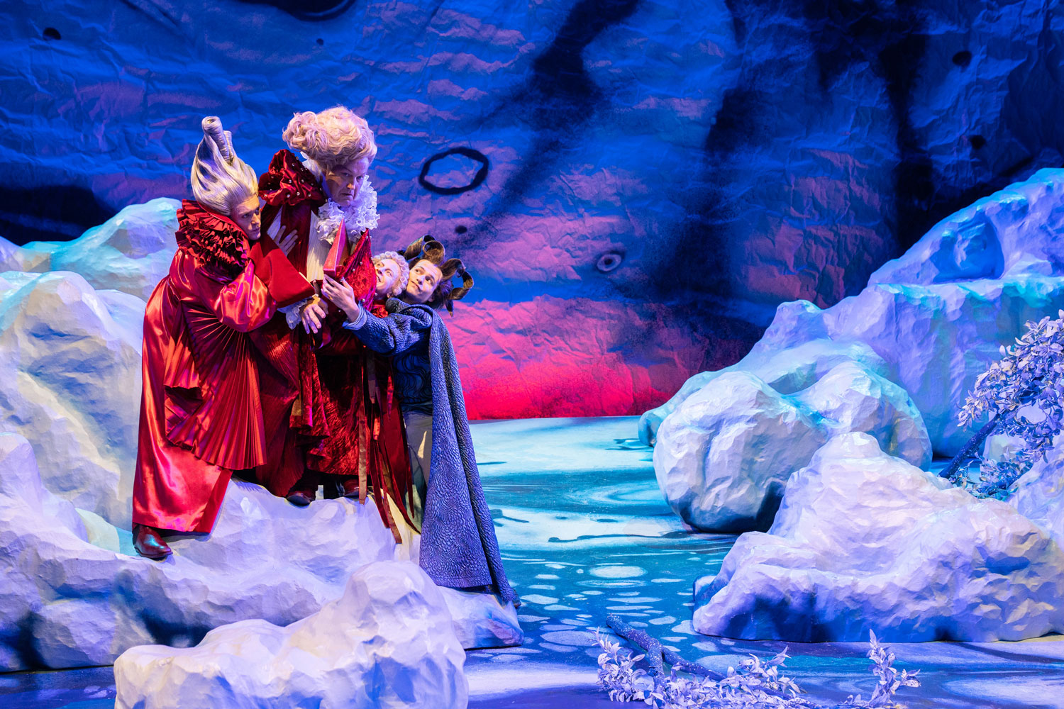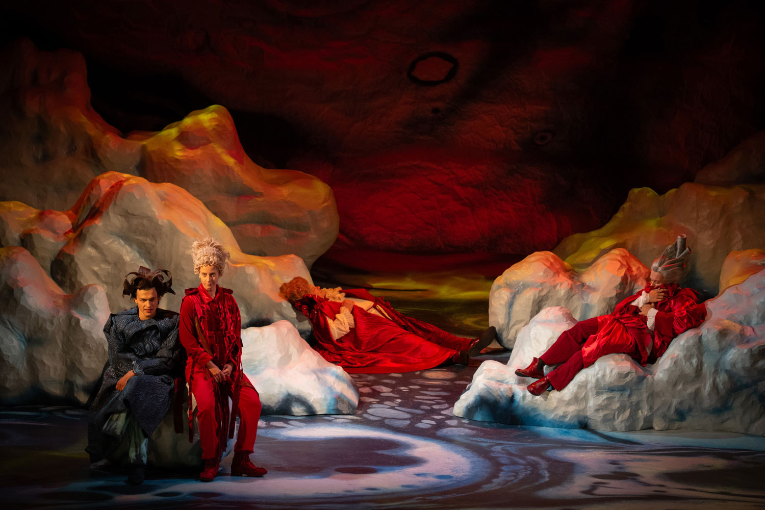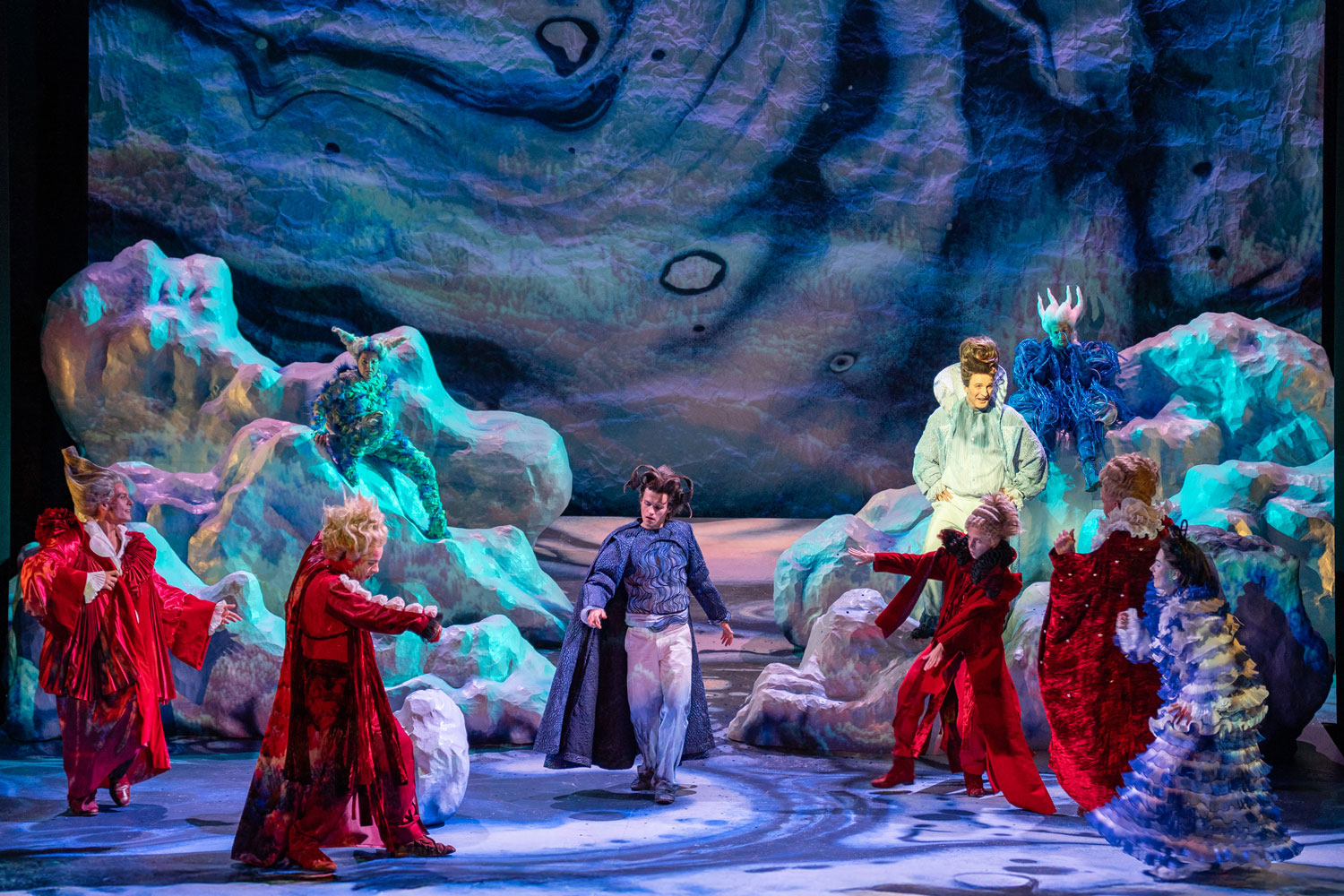 By William Shakespeare / A storm casts an illustrious group ashore on an unknown island, among them the current Duke of Milan, the King of Naples, and his son. Despite the raging elements, all mysteriously survive unharmed, for the ruler of the island, Prospero, endowed with magical powers has conjured the storm according to a plan: deprived of the Duchy of Milan by his brother, he now seeks revenge. Like a director, with the help of the airy spirit Ariel, he scatters the shipwrecked across the island and subjects them to entirely different situations: the King’s son Ferdinand encounters Prospero’s daughter Miranda, and the two fall in love at first sight. Within the circle of the powerful, murderous intrigues unfold. Meanwhile, Caliban, who once ruled the island before Prospero and is now forced to serve him, plots rebellion. Yet Prospero’s plan aims at reconciliation rather than revenge. In what is likely William Shakespeare’s final play, genres intertwine: first performed in 1611, the work begins dramatically, its intrigues reminiscent of tragedy, its wordplay and characters borrowed from comedy, all suffused with the poetic atmosphere of a fairytale.